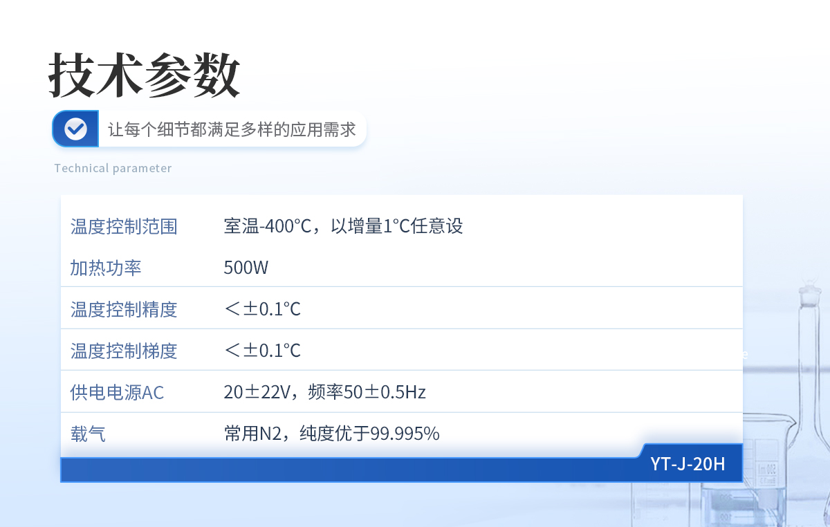 | 溫度控制范圍:室溫-400℃,以增量1℃任意設 | 加熱功率:500W | 溫度控制精度:<±0.1℃ | 溫度控制梯度:<±0.1℃ | 供電電源AC:220±22V,頻率50±0.5Hz | 載氣:常用N2,純度優(yōu)于99.995% |