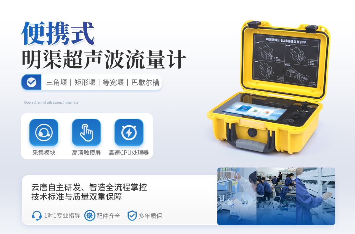 便攜式明渠流量計是專為水文監測、江河流量監測、農業灌溉及市政給排水等行業設計的一種高精度測量儀表,它采用超聲波技術和特殊的微功耗設計方案,結合全數字信號處理技術,確保了測量的穩定性與可靠性。該設備具有廣泛的測量范圍和較高的測量精度,支持實時數據顯示、數據記錄、導出及打印等功能,操作簡便且準確度高,非常適合于需要頻繁移動進行測量的場合。同時,它依據JJG711-1990檢定規程,并參照HJ353-2019、HJ354-2019、HJ355-2019以及HJ15-2019中對流量監測單元的相關要求進行比對驗收,確保了其在水利工程、環境監測、農業灌溉等領域的適用性和準確性。