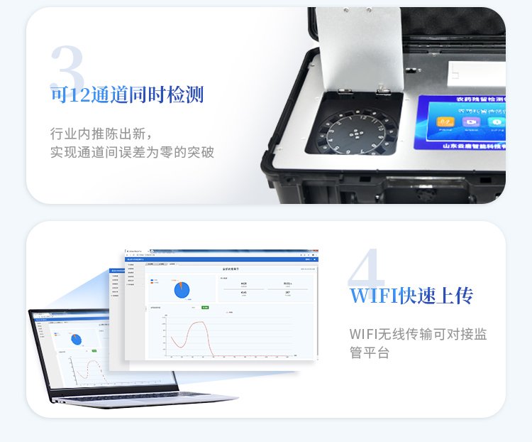 安卓智能操作系統,采用更加**和人性化操作,儀器具有無線聯網上傳功能,快速上傳數據,進行數據統計和分析。智能化程度高,儀器具有自檢功能:具有開機自檢和調零功能,具有自動檢測重復性功能;同時,檢測完成可自動打印檢測報告和二維碼。手機掃碼可顯示出詳細檢測信息。儀器帶有監管平臺,數據可局域網和互聯網數據上傳,檢測結果直接傳至食品安全監管平臺。進行區域食品安全監管及大數據分析處理與數據統計,檢測區域食品安全長短期動態,達到食品安全問題預估、預警 。樣品處理簡單省力,整體操作快速、安全、便捷。儀器具有自身保護功能,可設置用戶名及密碼,防止非工作人員操作等。內置強大的數據庫,可在儀器上直接選擇樣品名稱、檢測指標、送檢單位等信息,也可在儀器上直接編輯錄入樣品名稱、檢測指標、送檢單位等信息并保存進樣品數據庫,方便后期操作調取使用。儀器具有重新校準、鎖定、恢復出廠設置功能。