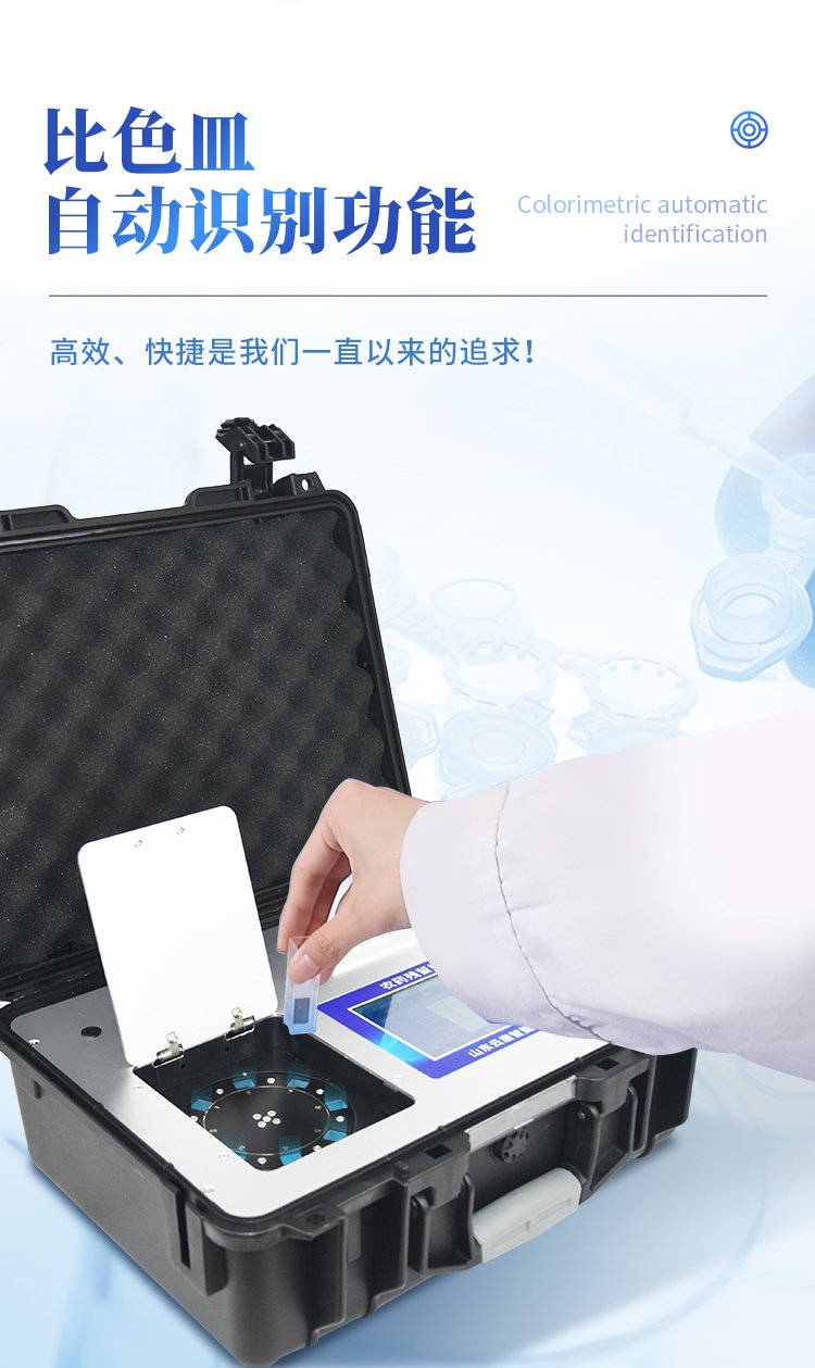 供電方式:交直流兩用,直流 12V 供電,可連接車載電源,可配 6ah 大容量充電鋰電池,方便戶外流動測試。顯示方式:7英寸液晶觸摸屏顯示,人性化中文操作界面,讀數直觀、簡單。檢測通道:12個檢測通道,可以同時測試多個樣品,循環檢測,即放即檢,每個樣品由程序控制分別獨立工作,不會互相干擾。高精光源系統:
