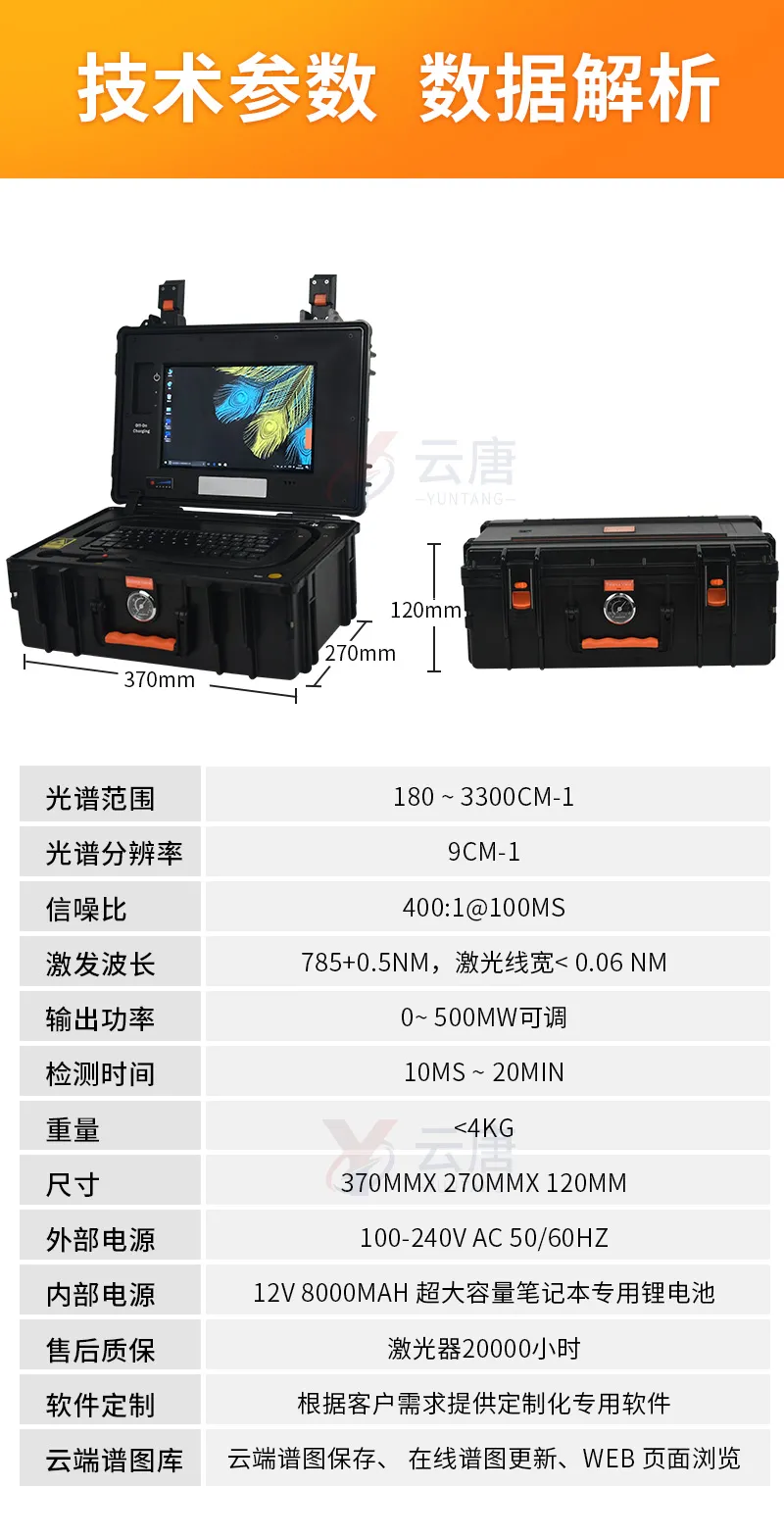 云唐便攜式拉曼光譜分析儀技術(shù)參數(shù):