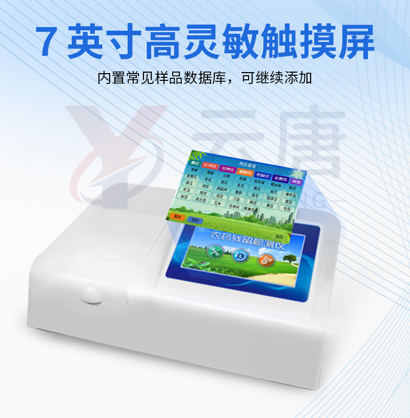 乙酰膽堿酯酶和丁酰膽堿酯酶試劑均可以使用,符合國家標準和農業部標準的要求。 自動判斷樣品是否合格,檢測結果更加直觀。儀器具有100多種蔬菜名稱菜單庫,分類管理,并可按需添加或刪除蔬菜名,編輯蔬菜名稱,可直接打印出蔬菜名稱。 檢測通道:12個檢測通道,可以同時測試多個樣品,循環檢測,即放即檢,每個樣品由程序控制分別獨立工作,不會互相干擾。智能操作系統,采用更加人性化操作,主控采用多核處理器,主頻1.88Ghz,運轉速度更快速,穩定性更強。 顯示方式:7英寸高靈敏真彩觸摸屏顯示,人性化中文操作界面,讀數直觀、簡單。打印機采用串口5v打印,可選擇手動打印或者自動打印,三分鐘出打印結果,打印格式為檢測人姓名、吸光度差值、檢測時間、檢測機構、樣品名稱及結果判定。 光源采用進口超高亮發光二極管,具有低功耗、高精度、穩定性強、光源可控可以關掉不使用的光源,響應速度快等優點。智能恒流穩壓,光強自動校準,長時間連續工作光源無溫漂現象。 儀器具有GPRS遠傳功能,可插手機卡實現數據遠傳平臺,wifi聯網功能,可將數據快速上傳電腦,進行數據管理與統計。采用USB2.0接口設計,方便數據的存貯和移動,并可隨時與計算機直接相連,并且可用計算機控制儀器。實現數據查詢、瀏覽、分析、統計、打印等。 智能化程度高,儀器具有自檢功能:具有開機自檢和調零功能,具有自動檢測重復性功能儀器具有自身保護功能,可設置用戶名及密碼,防止非工作人員操作等。 采用DC12v直流供電,安全系統更高,并且配備6A鋰電池充電器。儀器具有重新校準、鎖定、恢復出廠設置功能。
