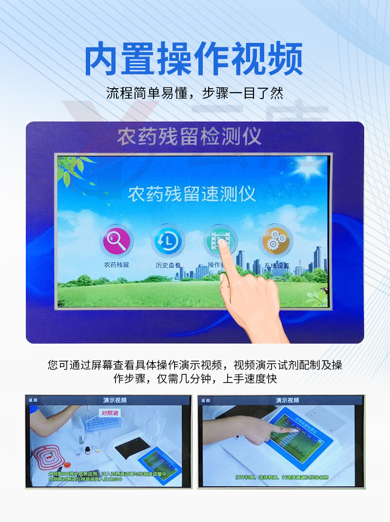廣泛應用于主要用于蔬菜、水果、茶葉、糧食、農副產品等食品中有機磷和氨基甲酸酯類農藥殘留的快速檢測;此外還可用于果蔬茶生產基地和農貿批發銷售市場現場檢測,餐館、學校、食堂、家庭果蔬加工前的安全速測等。