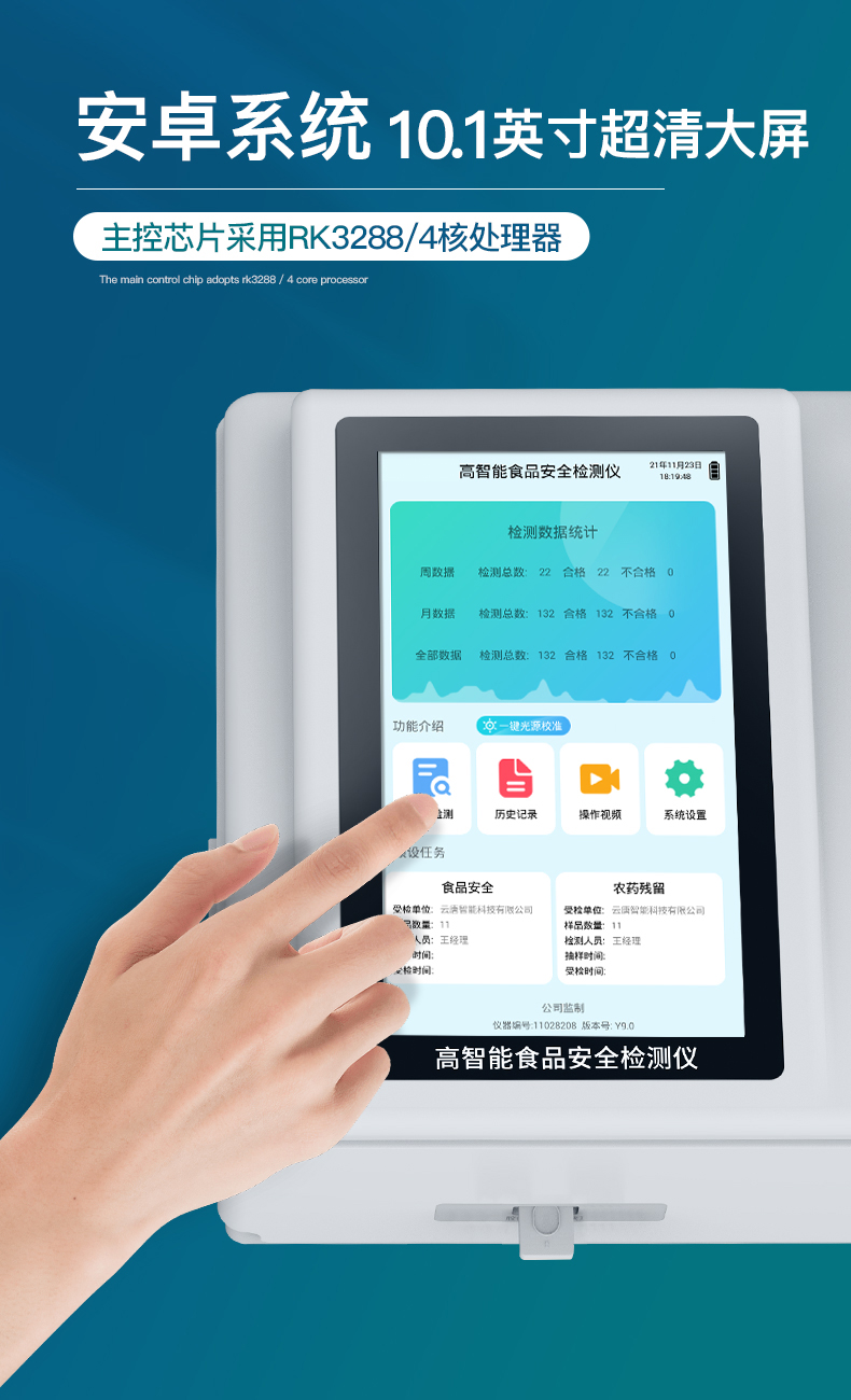 | 儀器采用手提式一體化系統(tǒng)檢測技術(shù),將分光光度模塊、數(shù)字化管理模塊、無線通訊模塊高度集成于一體,支持檢測200種食品安全檢測項目,同時預(yù)留升級檢測方法。 | 儀器檢測模塊標(biāo)準(zhǔn)化、智能化,檢測項目可隨意自由組合。檢測箱體內(nèi)置多個標(biāo)準(zhǔn)檢測單元,檢測模塊可以調(diào)整配置。 | 顯示屏幕:儀器采用10.1英寸豎向液晶觸摸屏顯,搭配運(yùn)行安卓智能操作系統(tǒng),主控芯片采用ARM Cortex-A7,RK3288/4核處理器,主頻1.88Ghz,操作方便,性能更強(qiáng)。 | 檢測通道:≥12通道;采用精密旋轉(zhuǎn)比色池設(shè)計,使用同芯片同光源校準(zhǔn)精度,解決不同光源之間的誤差值,更加準(zhǔn)確**。(1-12通道間誤差0.1%,***:**202022821055.2) | 儀器光源:高精度進(jìn)口四波長冷光源,每個通道均配置 410、520、590、630nm 波長光源,標(biāo)配**的光路切換裝置,專利光路切換功能可實現(xiàn)64波長,并且所有檢測項目可實現(xiàn)所有通道同時檢測。 | 設(shè)備可一鍵校準(zhǔn),自動保存校準(zhǔn)數(shù)據(jù),自動對比校驗,得到精準(zhǔn)光源,采用Android SP存儲數(shù)據(jù),光源數(shù)據(jù)永不丟失,方便每一次使用。 | 通訊接口:配備無線通信模塊、可選配4G(APN)通訊模塊和藍(lán)牙傳輸,同時具有雙USB接口以及RJ45網(wǎng)線接口,可以多方式實現(xiàn)數(shù)據(jù)保存及數(shù)據(jù)傳輸。 | 存儲方式:支持U盤存儲,標(biāo)準(zhǔn)USB接口,免驅(qū)動安裝。檢測結(jié)果存儲容量20萬條以上,可生成Excel表格進(jìn)行拷貝,并具有登錄保護(hù)功能。 | 智能化操作系統(tǒng): | 1)操作系統(tǒng):儀器可在同一檢測界面自動對應(yīng)相關(guān)檢測通道,一次性選擇1-12個樣品名稱,無需退出界面,節(jié)省操作時間。并可以對每個通道屬性和樣品信息單獨(dú)進(jìn)行編輯,例如送檢單位、人員,檢測人員等,打印時勾選打印顯示。 | 2)數(shù)據(jù)集成系統(tǒng):設(shè)備首頁自動匯總分析檢測數(shù)據(jù),包含:周檢測數(shù)據(jù)、月檢測數(shù)據(jù),全部檢測總數(shù)量,均包含檢測總數(shù),合格數(shù),不合格數(shù),以及相關(guān)柱形分析圖,各項檢測數(shù)據(jù)一目了然,無需電腦查詢,更加快捷直觀。 | 3)數(shù)據(jù)庫系統(tǒng):十幾項數(shù)據(jù)庫分類管理儀器:包含項目類型、項目數(shù)據(jù)、檢測數(shù)據(jù)、歷史記錄、國標(biāo)信息、曲線信息、采樣信息、檢測信息、受檢信息、復(fù)核信息、圖表信息、光源校準(zhǔn)信息、打印樣式信息、樣品庫信息等等,數(shù)據(jù)庫之間互相協(xié)調(diào)聯(lián)動保證數(shù)據(jù)的真實完整性。同時產(chǎn)品數(shù)據(jù)庫以及歷史檢測記錄支持一鍵檢索功能。 | 4)限量規(guī)判系統(tǒng):具有限量查詢、添加物質(zhì)合規(guī)判定系統(tǒng)。檢測出結(jié)果后,系統(tǒng)自動調(diào)用系統(tǒng)數(shù)據(jù)庫中相關(guān)國標(biāo)進(jìn)行比對判定,客觀顯示判定結(jié)果是否合格。 | 5)項目預(yù)設(shè)系統(tǒng):儀器具有任務(wù)預(yù)設(shè)模塊,一鍵提前預(yù)設(shè),給出方便快捷的新檢測方案,每一個任務(wù)分別可以設(shè)置不同的樣品、批次、編號、來源、備注、抽樣信息、檢測信息、受檢信息、復(fù)核信息等更多信息。樣品送檢時一鍵調(diào)取保存信息,并可多次調(diào)取,大大提高檢測效率。 | 6)數(shù)據(jù)監(jiān)管系統(tǒng):同步對接監(jiān)管平臺,數(shù)據(jù)可局域網(wǎng)和互聯(lián)網(wǎng)數(shù)據(jù)上傳,檢測結(jié)果可選擇直接傳至食品安全監(jiān)管平臺。進(jìn)行區(qū)域食品安全監(jiān)管及大數(shù)據(jù)分析處理與數(shù)據(jù)統(tǒng)計,檢測區(qū)域食品安全長短期動態(tài),達(dá)到食品安全問題預(yù)估、預(yù)警。 | 7)打印系統(tǒng):內(nèi)置全新打印機(jī),新創(chuàng)自定義打印方式,可按需靈活勾選控制:產(chǎn)品合格證(國家農(nóng)業(yè)部標(biāo)準(zhǔn)要求),二維碼,抽樣信息、檢測信息,受檢信息、復(fù)核信息、抽樣日期、檢測日期等信息的打印。 | 供電模式:儀器交直流兩用,直流12V供電,可連接車載電源,可配6ah大容量充電鋰電池,電量可實時顯示,方便戶外流動測試。 | 儀器加入遠(yuǎn)程升級功能,可定向分客戶分儀器更新,開機(jī)后自動更新,客戶無需任何操作,即可升級全新項目。做到了無需退換機(jī)器即可實現(xiàn)實時遠(yuǎn)程升級檢測儀器。 | 設(shè)備尺寸:(長*寬*高)440*300*180mm | 儀器加入遠(yuǎn)程升級功能,可定向分客戶分儀器更新,開機(jī)后自動更新,客戶無需任何操作,即可升級全新項目。做到了無需退換機(jī)器即可實現(xiàn)實時遠(yuǎn)程升級檢測儀器。 |