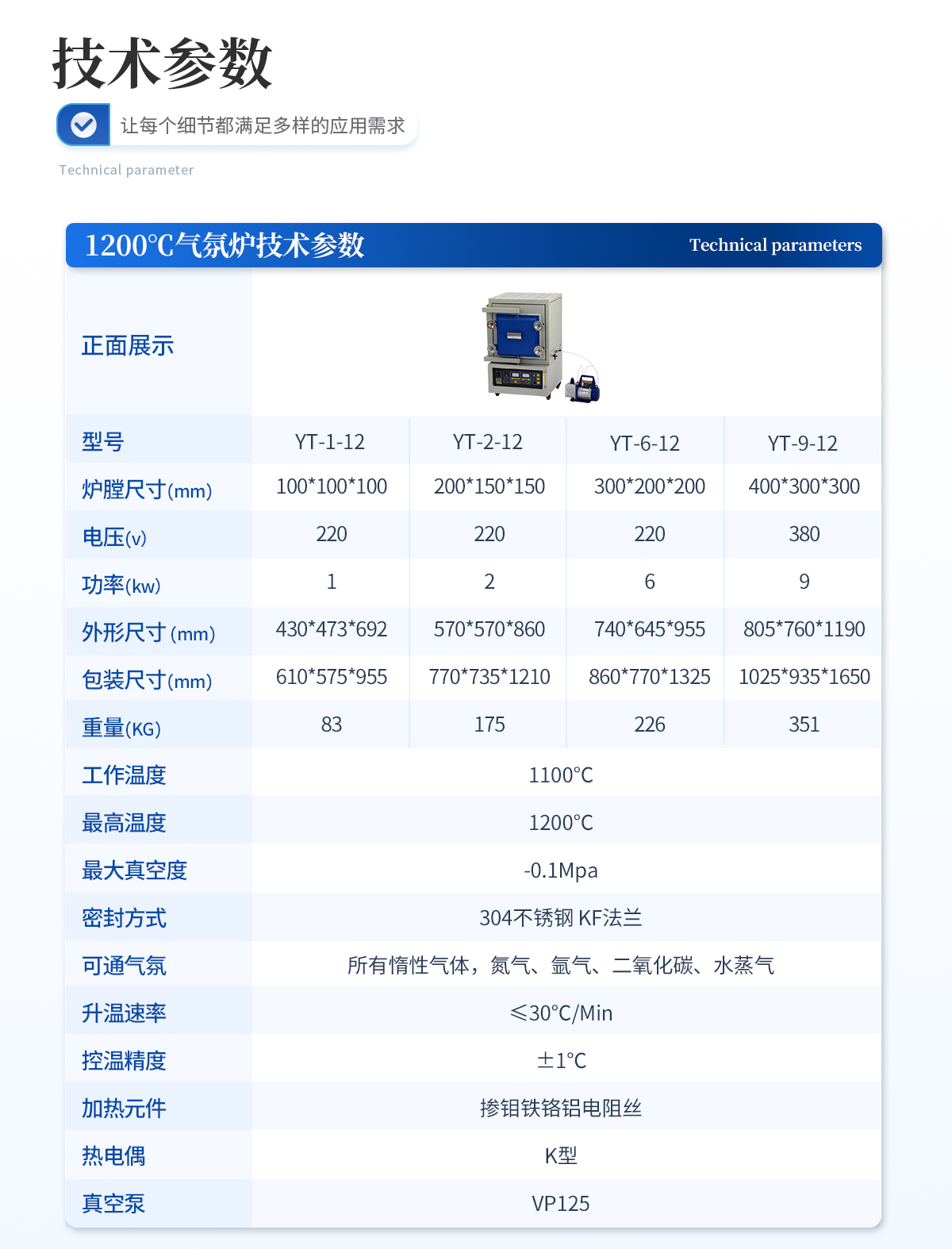 | 工作溫度:1100℃ | **溫度:1200℃ | **真空度:-0.1Mpa | 密封方式:304不銹鋼 KF法蘭 | 可通氣氛:所有惰性氣體,氮氣、氬氣、二氧化碳、水蒸氣 | 升溫速率:≤30℃/Min | 控溫精度:±1℃ | 加熱元件:摻鉬鐵鉻鋁電阻絲 | 熱電偶:K型 | 工作電壓:220V 50HZ | 功率:1KW | 真空泵:VP125 |