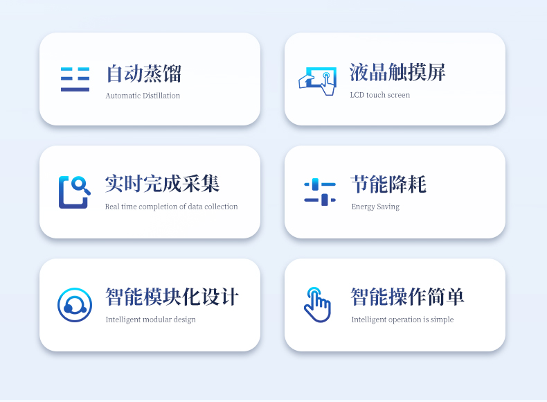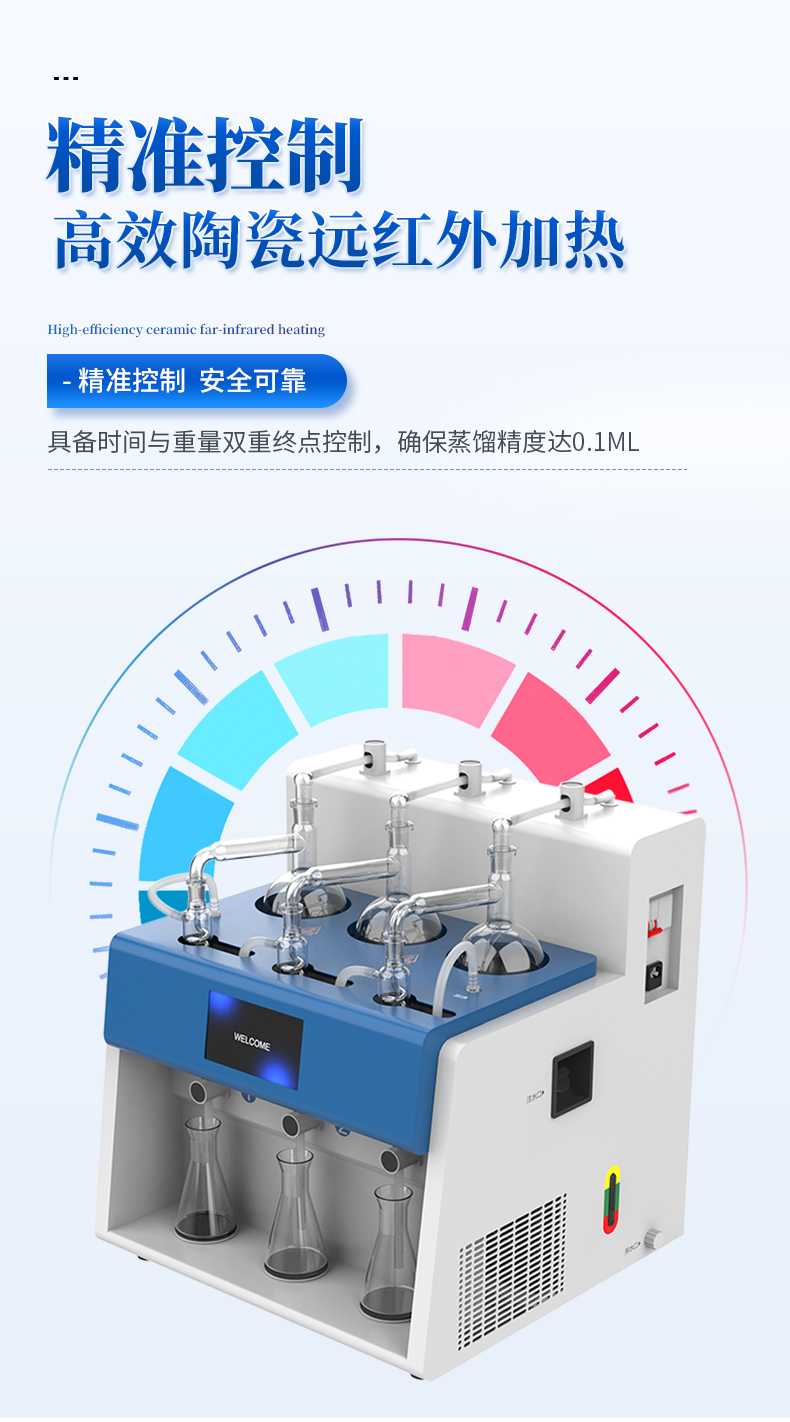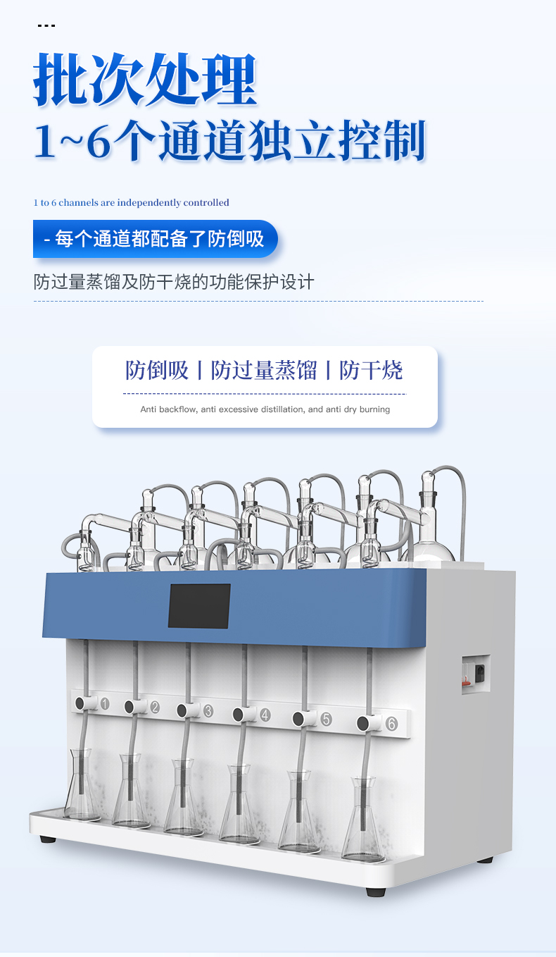 智能一體化蒸餾儀采用智能模塊化設(shè)計(jì):方法自定義設(shè)置保存/讀取、開機(jī)自動(dòng)調(diào)取使用,冷凝單元特殊定制蛇形冷凝管、智能終點(diǎn)控制防過量蒸餾、防倒吸保護(hù),防干燒保護(hù)、實(shí)現(xiàn)了智能操作簡單、自動(dòng)蒸餾、美觀實(shí)用、節(jié)能降耗、節(jié)省人工的同時(shí)為用戶做樣提**率節(jié)約人員成本開銷。