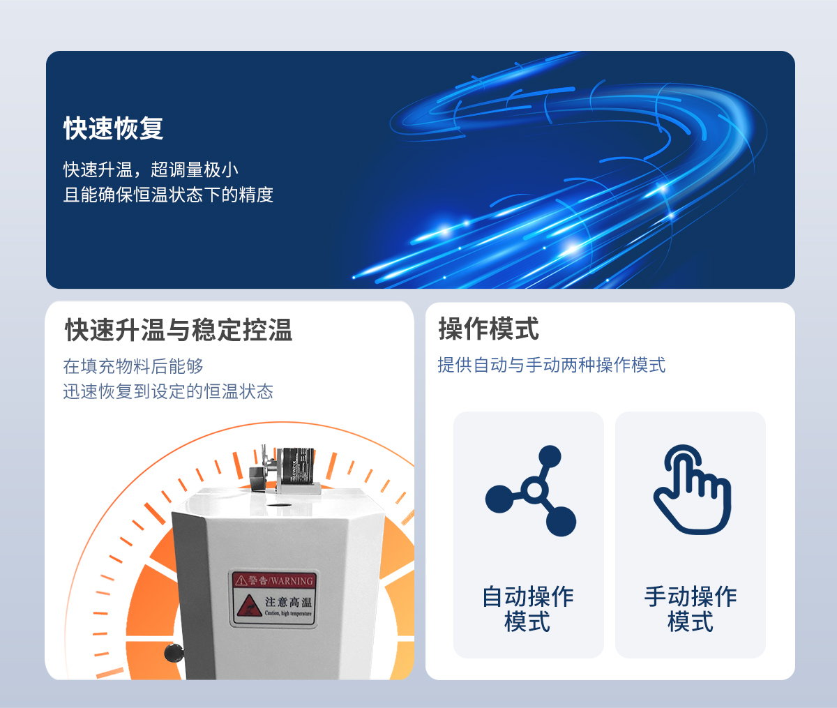 溫度控制系統:儀器具有升溫、恒溫控制裝置,控溫范圍為室溫+300℃,精度為±0.2℃以內,溫度波動度±0.5℃。
