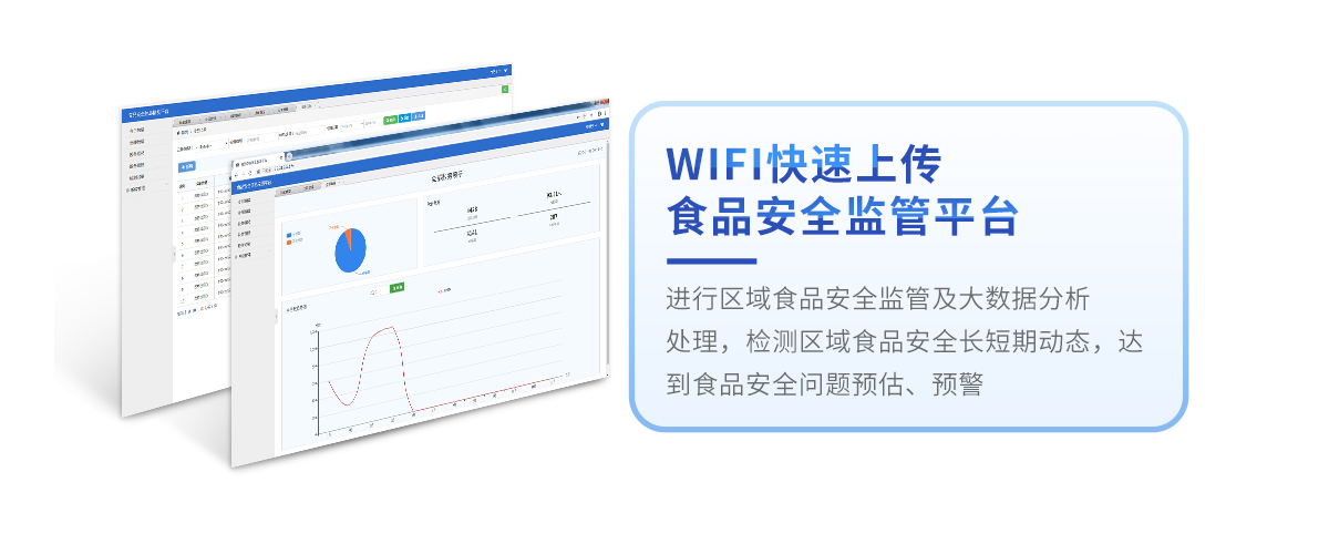 8、儀器帶有監(jiān)管平臺(tái)。數(shù)據(jù)可局域網(wǎng)和互聯(lián)網(wǎng)數(shù)據(jù)上傳,檢測(cè)結(jié)果直接傳至食品安全監(jiān)管平臺(tái)。進(jìn)行區(qū)域食品安全監(jiān)管及大數(shù)據(jù)分析處理,檢測(cè)區(qū)域食品安全長短期動(dòng)態(tài),達(dá)到食品安全問題預(yù)估、預(yù)警
