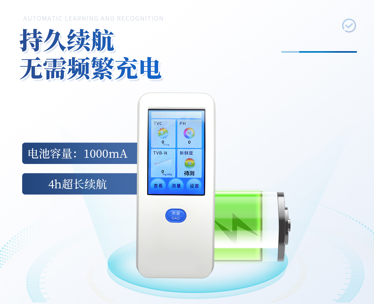 聯合中國農業大學彭彥昆教授團隊研發的掌上式生鮮肉新鮮度分析儀,可用于檢測生鮮肉的TVC、pH、TVB-N、新鮮度、L*、A*、B*等評價指標。Palmarter具有體積小、便 于攜帶、性價比高等特點,其應用場景包括但不限于肉儲運企業、肉品品質監管部門、飯店、超市、菜場、家庭等。