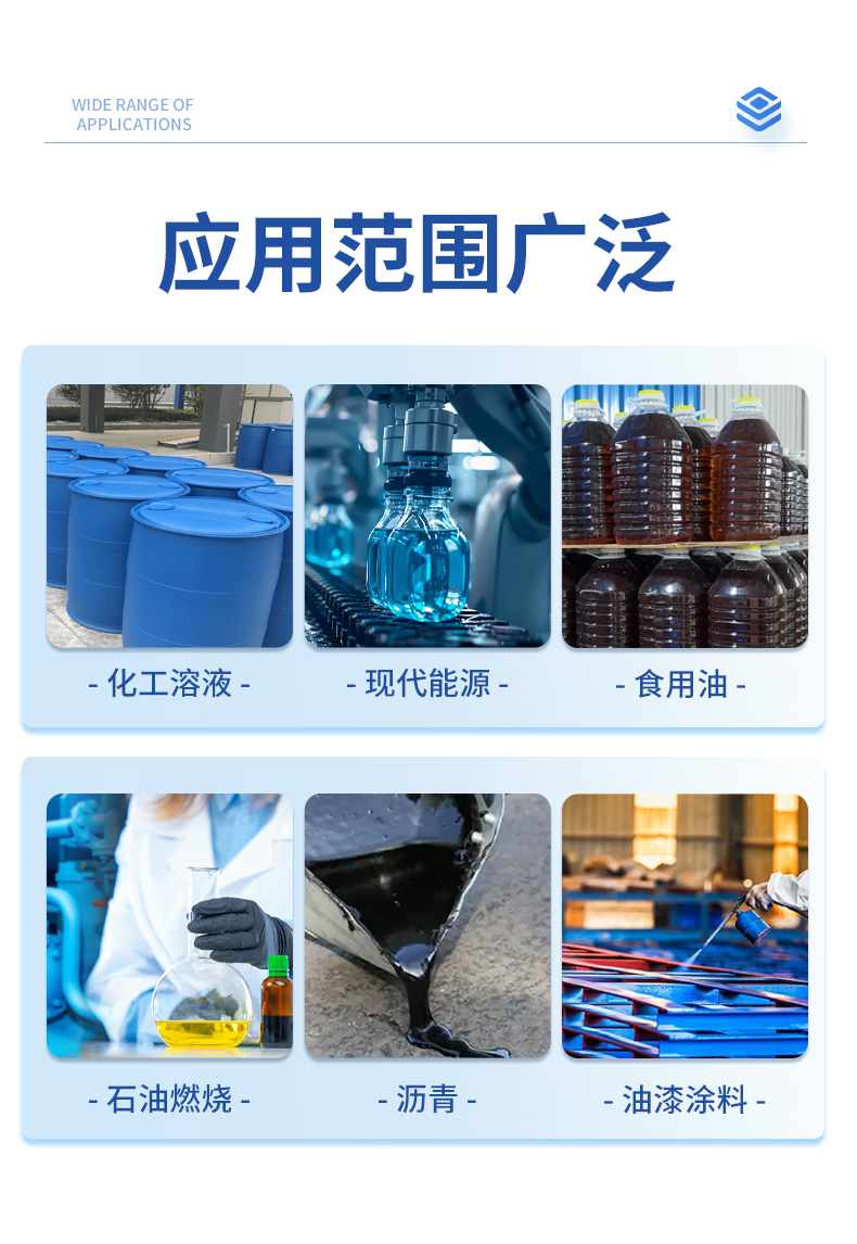| 化工溶液、化工助劑、現代能源、石油燃燒、藥劑、油漆涂料、瀝青、食用油等各種液體、研究實驗室。 |